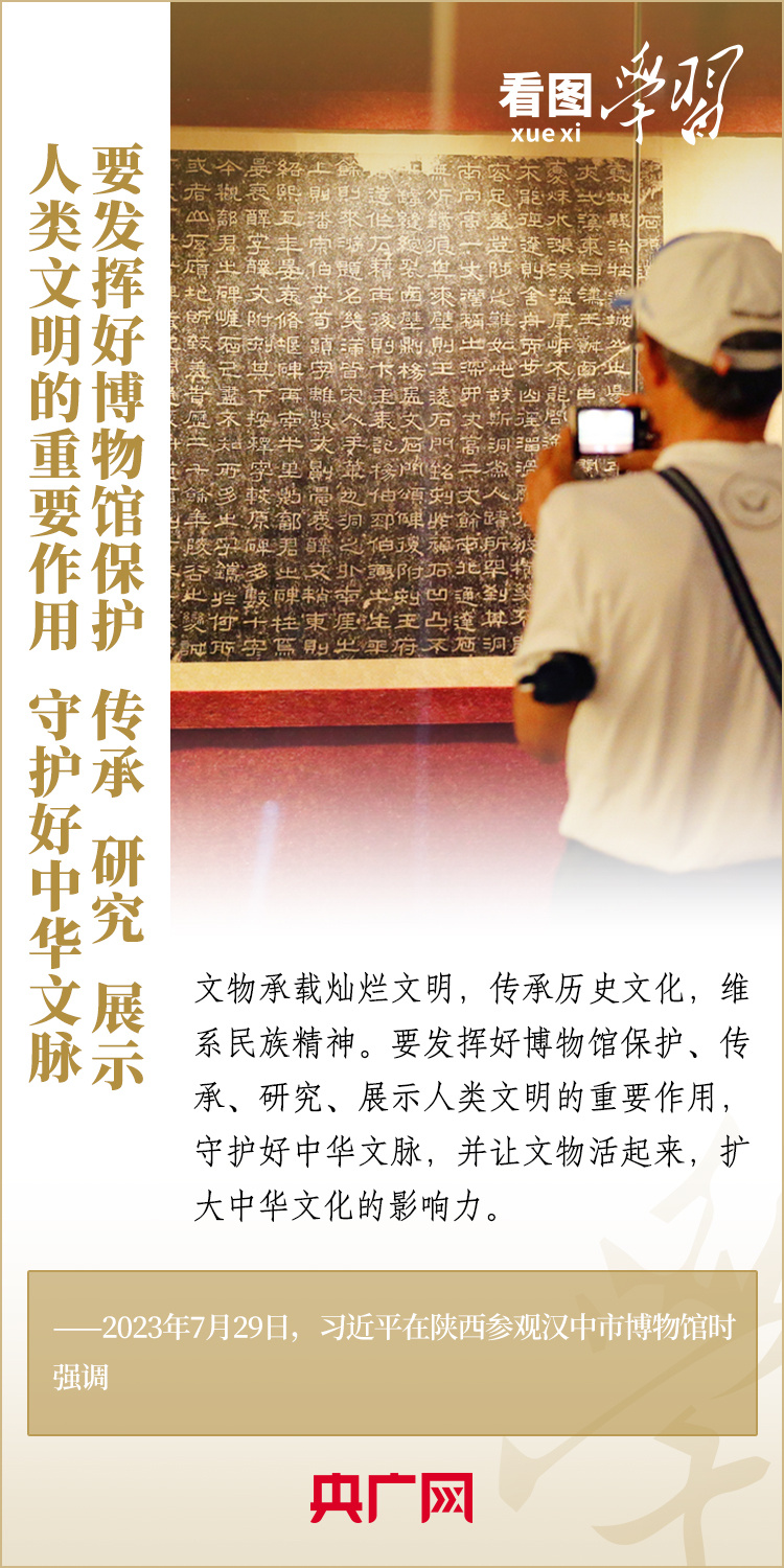 “一座博物館就是一所大學(xué)?!薄安┪镳^很重要,我從小就愛看博物館,小時候北京的博物館我差不多都看過了”“博物館建設(shè)要更完善、更成體系,同時發(fā)揮好博物館的教育功能”……在國內(nèi)考察中,習(xí)近平總書記曾經(jīng)多次走進當(dāng)?shù)夭┪镳^,了解館藏文物的收藏、保護、研究情況,對博物館建設(shè)和利用作出重要指示。一起來學(xué)習(xí)!