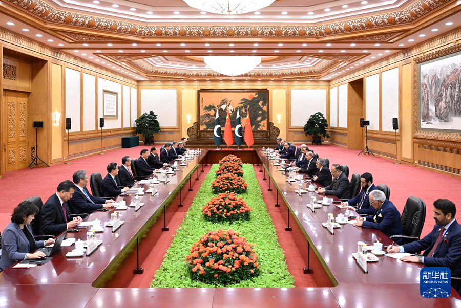6月7日下午,國家主席習近平在北京人民大會堂會見來華正式訪問的巴基斯坦總理夏巴茲。新華社記者 申宏 攝