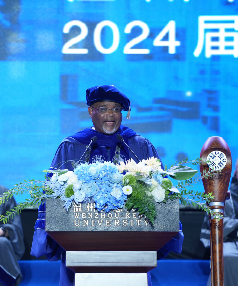 6月7日,美國(guó)肯恩大學(xué)校長(zhǎng)拉蒙·雷波列特在溫州肯恩大學(xué)畢業(yè)典禮上致辭。(受訪者供圖)