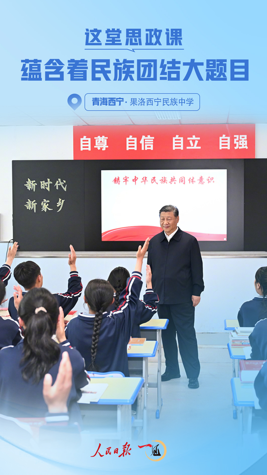 西寧城北,元朔山麓,藍(lán)天白云掩映下的果洛西寧民族中學(xué)綠意蔥蘢。6月18日,正在青海省西寧市考察的習(xí)近平總書記來(lái)到這里并觀摩了一堂思政課。總書記對(duì)思政課歷來(lái)很重視——這是落實(shí)立德樹(shù)人根本任務(wù)的關(guān)鍵課程,是培養(yǎng)社會(huì)主義建設(shè)者和接班人的重要保障。