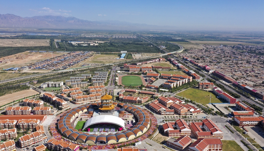 這是2022年9月7日拍攝的寧夏銀川市閩寧鎮(zhèn)(無(wú)人機(jī)照片)。新華社記者 馮開(kāi)華 攝