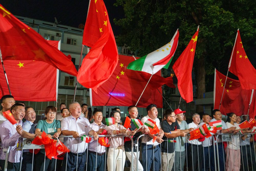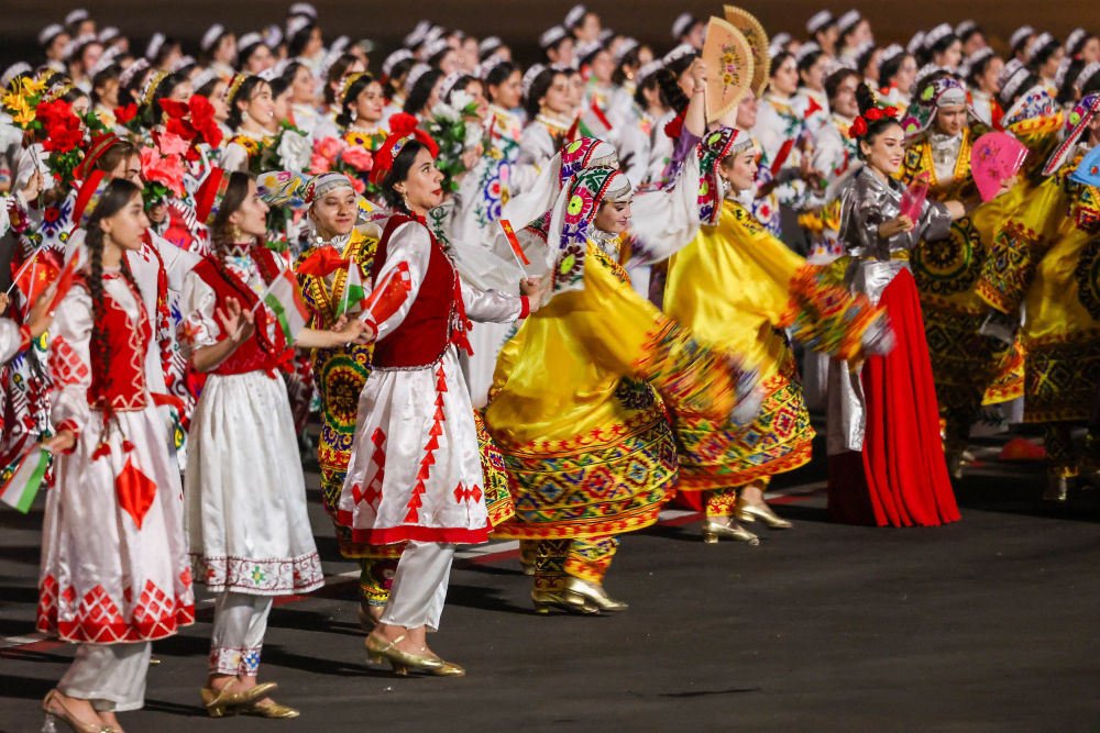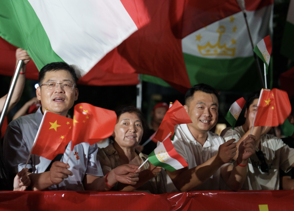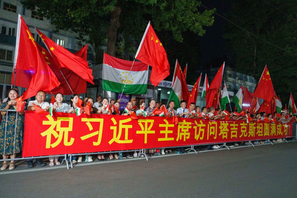拉赫蒙在機場為習近平舉行盛大隆重的迎賓儀式。1500多名身著民族盛裝的塔吉克斯坦青年表演富有濃郁特色的中塔歌舞,揮舞中塔兩國國旗,表達對中國最尊貴客人的熱烈歡迎。