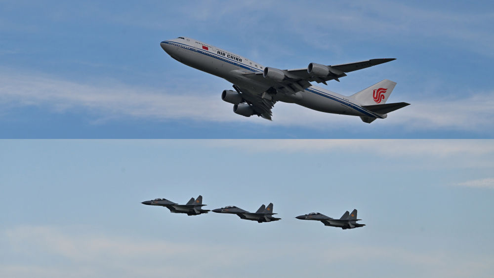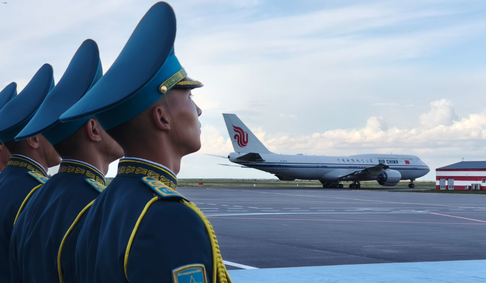 習近平專機起飛后,哈薩克斯坦三架空軍戰(zhàn)機升空護航。