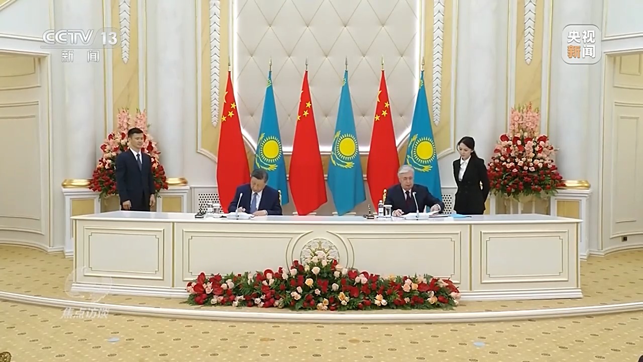 兩國(guó)元首共同簽署《中華人民共和國(guó)和哈薩克斯坦共和國(guó)聯(lián)合聲明》,見證簽署數(shù)十項(xiàng)合作文件并共同出席兩國(guó)文化中心和北京語(yǔ)言大學(xué)哈薩克斯坦分校揭牌儀式。