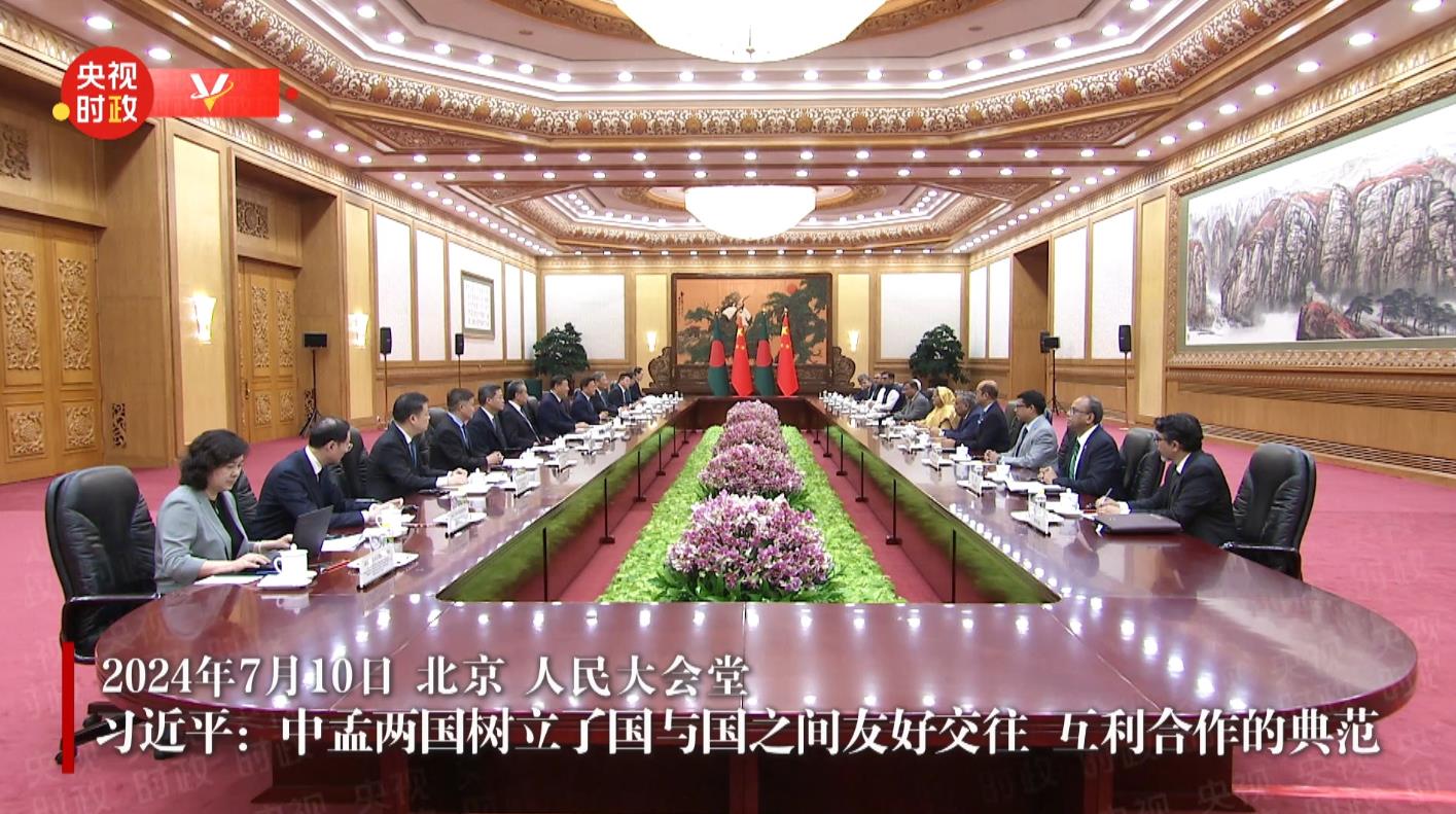 習(xí)近平指出,中國和孟加拉國是相知相交的友好近鄰,兩國友好往來綿延千年。建交以來,兩國始終相互尊重、相互支持,平等相待、合作共贏,樹立了國與國之間尤其是“全球南方”國家間友好交往、互利合作的典范。
