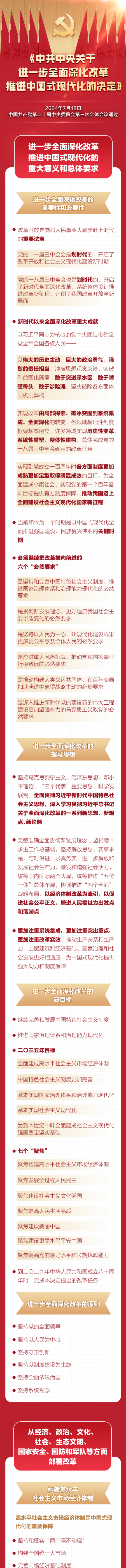 7月15日至18日,黨的二十屆三中全會(huì)在北京舉行。全會(huì)審議通過了《中共中央關(guān)于進(jìn)一步全面深化改革、推進(jìn)中國(guó)式現(xiàn)代化的決定》。