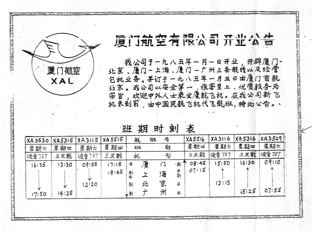 1984年7月,廈門航空以2000萬元的“家底”起步,成為我國首家按現(xiàn)代企業(yè)制度運營的航空公司。