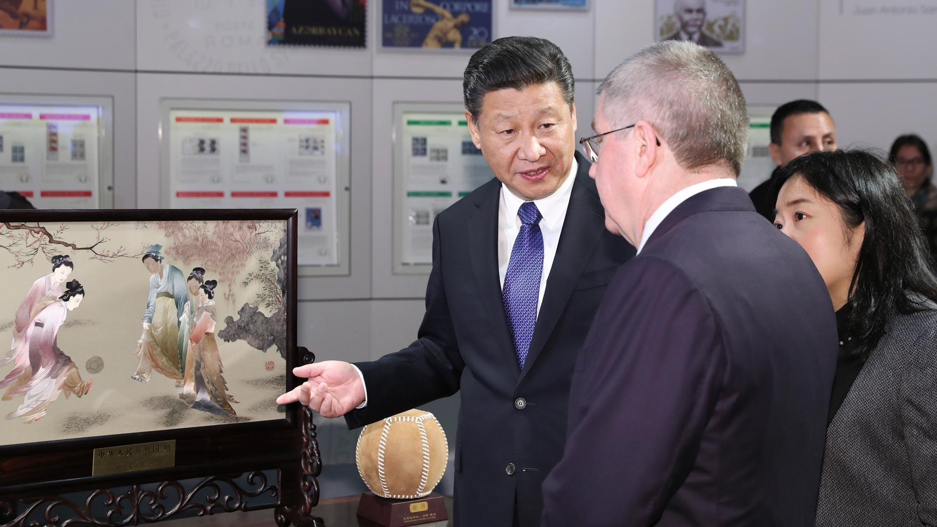2017年1月,習(xí)近平主席在訪問瑞士期間專程來(lái)到坐落在洛桑半山腰的國(guó)際奧林匹克博物館。這是中國(guó)國(guó)家元首首次到訪。習(xí)近平主席代表中國(guó)向國(guó)際奧委會(huì)贈(zèng)送了蘇繡《仕女蹴鞠圖》,并在留言簿上用中文寫下:“弘揚(yáng)奧運(yùn)精神,促進(jìn)和平發(fā)展”。