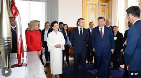 兩個(gè)多月前,國(guó)家主席習(xí)近平在巴黎愛麗舍宮同法國(guó)總統(tǒng)馬克龍舉行會(huì)談。會(huì)談前,兩國(guó)元首夫婦互贈(zèng)禮品。習(xí)近平主席贈(zèng)送給馬克龍總統(tǒng)的是北京雙奧火炬,馬克龍總統(tǒng)則以巴黎奧運(yùn)火炬回贈(zèng)。習(xí)近平主席說(shuō):“法國(guó)是一個(gè)體育強(qiáng)國(guó),我衷心祝愿巴黎奧運(yùn)會(huì)取得成功。中方將派出高水平代表團(tuán)赴法參賽。”