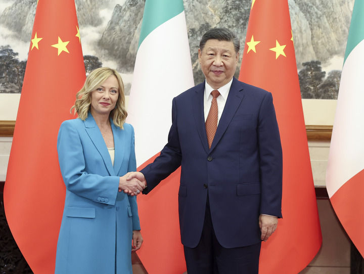 7月29日下午,國家主席習(xí)近平在北京釣魚臺國賓館會見來華進(jìn)行正式訪問的意大利總理梅洛尼。