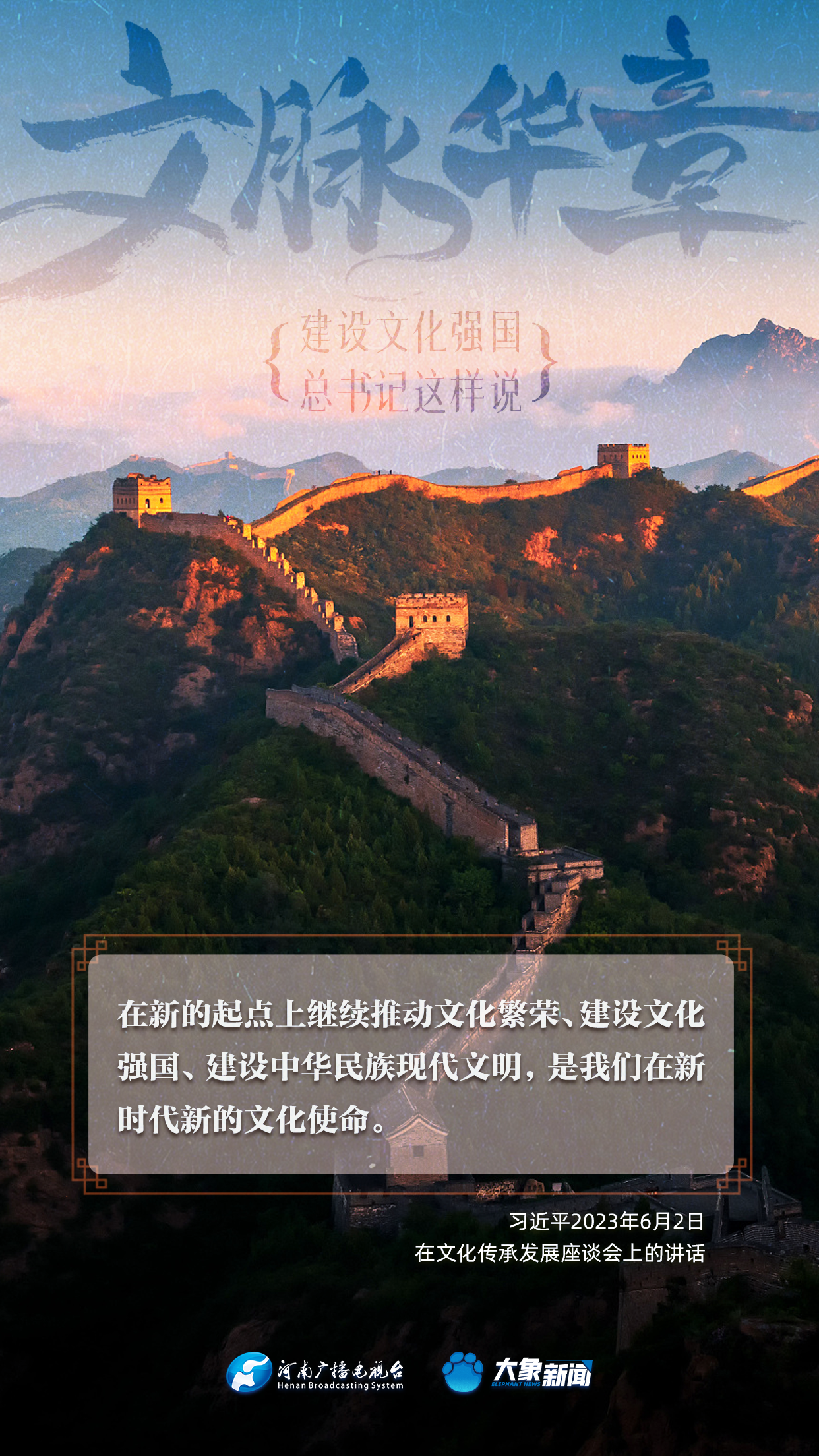 黨的十八大以來,習近平總書記站在全局和戰(zhàn)略高度,就建設社會主義文化強國提出一系列新思想新觀點新論斷,為我們堅定文化自信,堅持中國特色社會主義文化發(fā)展道路,提供了指引。大象新聞與您一起學習、領悟。