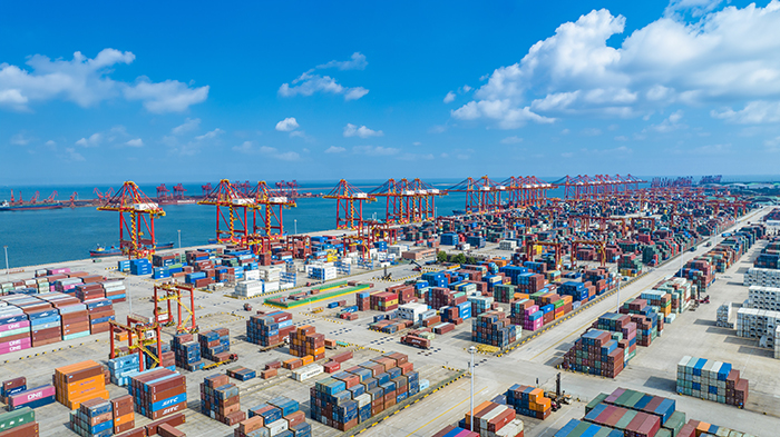 向海圖強,我國海運連接度全球領先,港口貨物吞吐量、港口集裝箱吞吐量等指標穩(wěn)居世界第一?!敖z路海運”聯(lián)通全球43個國家100多個港口。2023年,中國外貿海運量全球占比超三成。