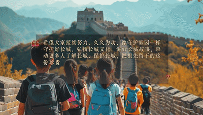 希望大家接續(xù)努力、久久為功,像守護家園一樣守護好長城,弘揚長城文化,講好長城故事,帶動更多人了解長城、保護長城,把祖先留下的這份珍貴財富世世代代傳下去,為建設(shè)社會主義文化強國、推進(jìn)中國式現(xiàn)代化貢獻(xiàn)力量。