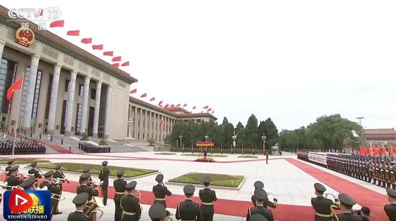 會(huì)談前,習(xí)近平和夫人彭麗媛在人民大會(huì)堂東門外廣場(chǎng)為蘇林和夫人吳芳璃舉行歡迎儀式。