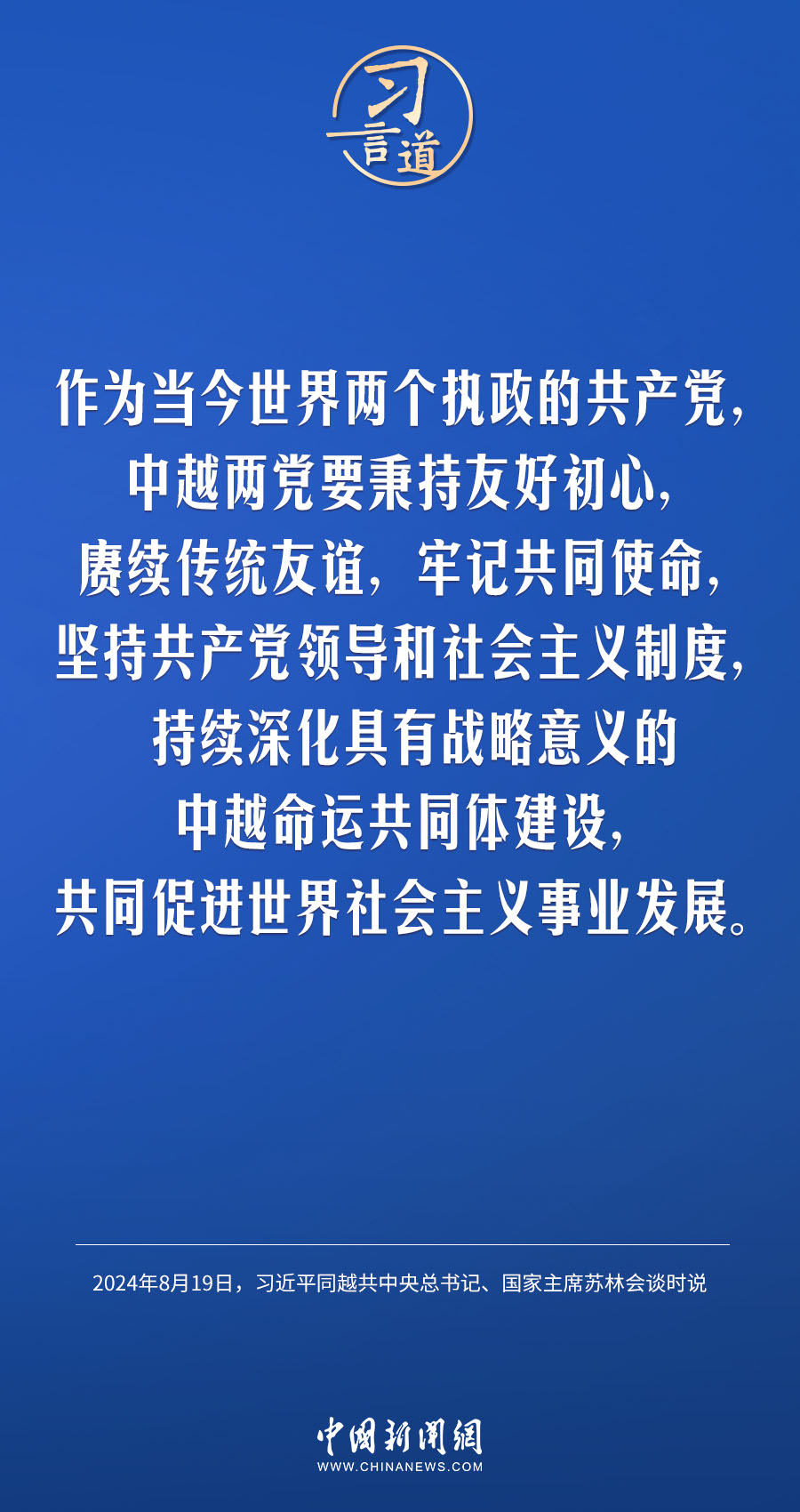 8月19日,中共中央總書記、國家主席習(xí)近平在北京人民大會(huì)堂同來華進(jìn)行國事訪問的越共中央總書記、國家主席蘇林舉行會(huì)談。習(xí)近平指出——