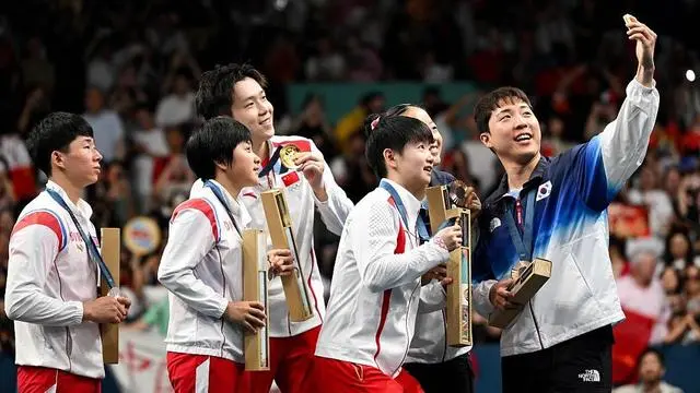 巴黎奧運會乒乓球混合雙打頒獎儀式結(jié)束后,中朝韓運動員聚到一起合影的場景,在朋友圈刷了屏。