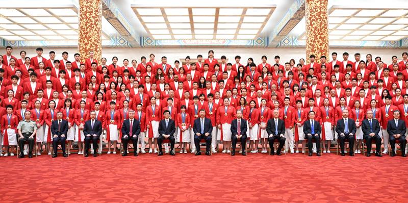 8月20日,習(xí)近平總書記在人民大會堂接見第33屆夏季奧林匹克運動會中國體育代表團全體成員。