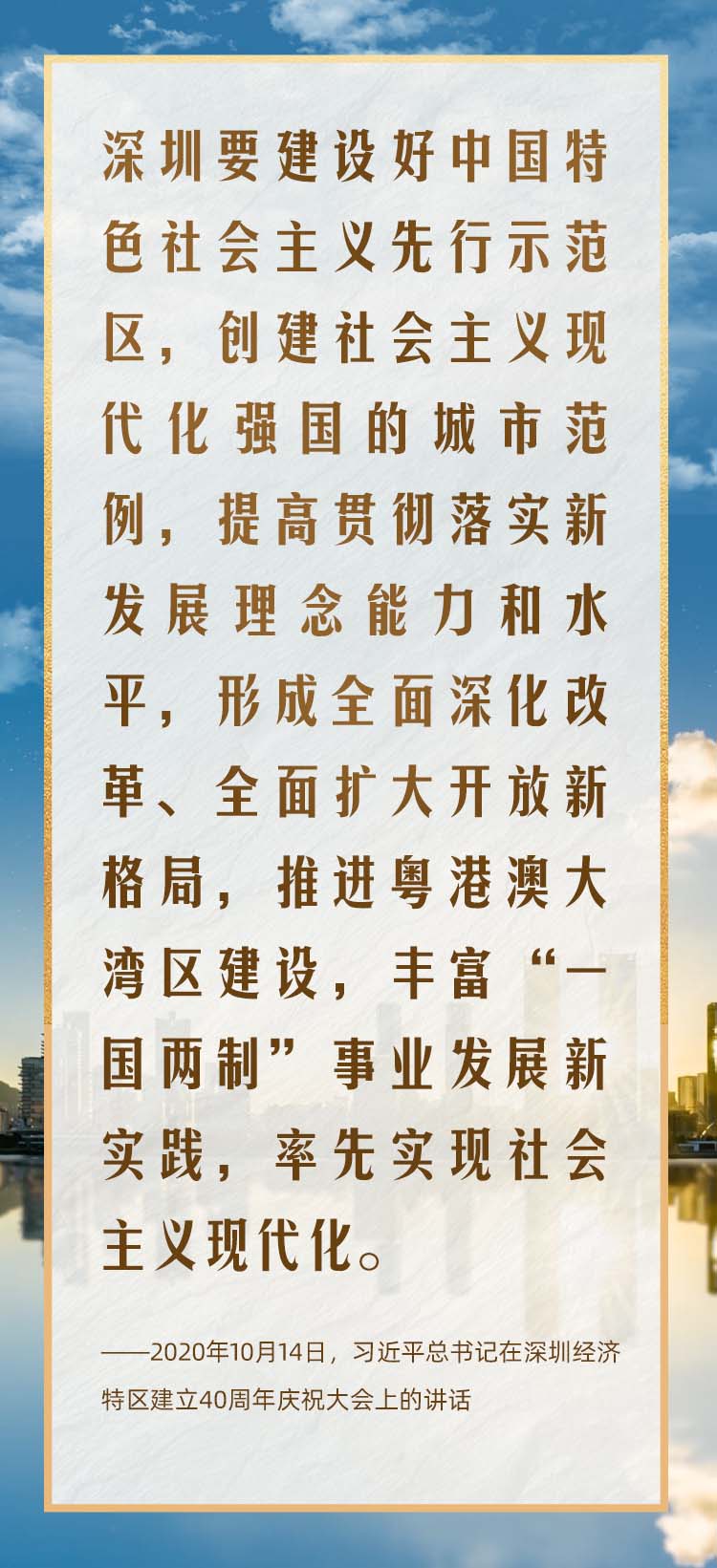2020年10月,在慶祝深圳經(jīng)濟特區(qū)建立40周年之際,習近平總書記又一次來到這里,出席慶祝大會,強調(diào)改革不停頓、開放不止步,在更高起點上推進改革開放,推動經(jīng)濟特區(qū)工作開創(chuàng)新局面。