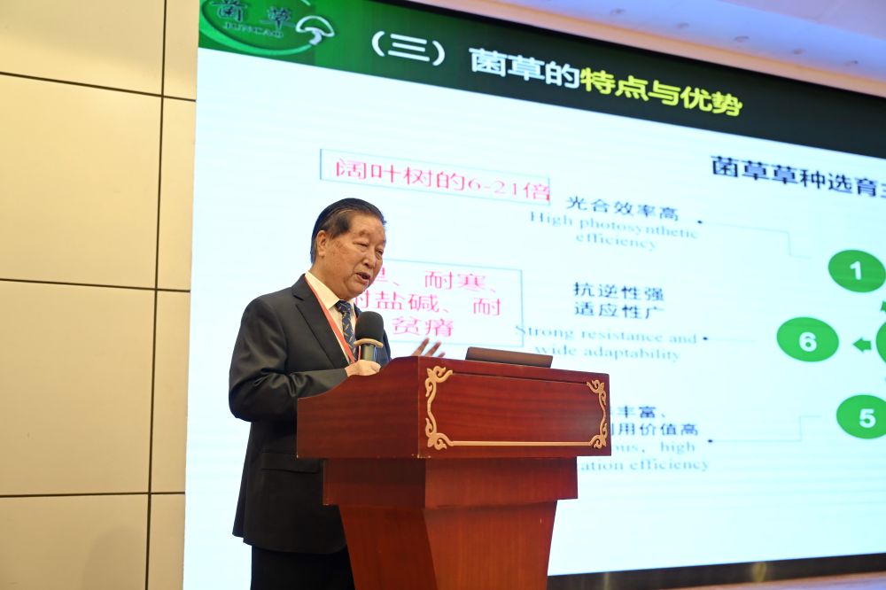 6月16日,第十九屆國際菌草產(chǎn)業(yè)發(fā)展研討會在福建福州舉行,國家菌草工程技術(shù)研究中心首席科學(xué)家林占熺發(fā)表《菌草技術(shù)助力落實(shí)聯(lián)合國可持續(xù)發(fā)展目標(biāo)的潛力》主旨報告。新華社記者 林善傳 攝