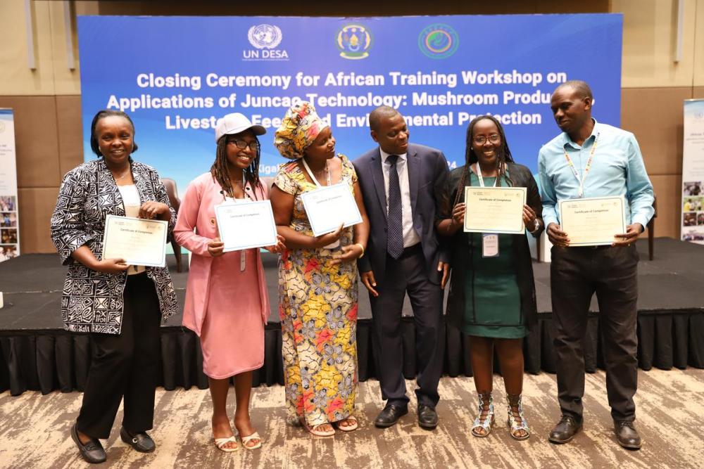 8月初,在非洲地區(qū)菌草技術(shù)培訓(xùn)班舉辦期間,聯(lián)合國官員和使團(tuán)代表團(tuán)專程赴盧旺達(dá)考察菌草技術(shù)和產(chǎn)業(yè)在非洲地區(qū)的發(fā)展?!拔液芨吲d同其他聯(lián)合國官員一起,親眼見證菌草技術(shù)以實(shí)際行動造福民眾。”聯(lián)合國秘書長辦公室主任考特尼·拉特雷說,菌草技術(shù)具有“可負(fù)擔(dān)”的突出優(yōu)勢,“對非洲大陸所有發(fā)展中國家很有價值、非常適用”。