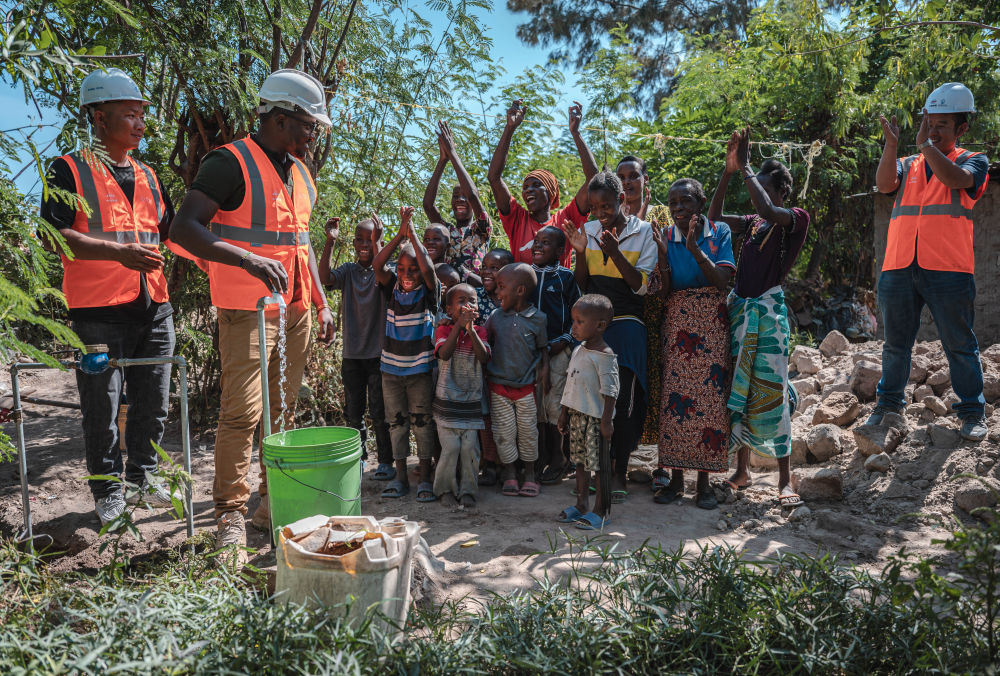 2023年6月13日,在坦桑尼亞姆萬扎省米松圭,工作人員接通水管后贏得當地居民鼓掌歡呼。新華社記者 王冠森 攝