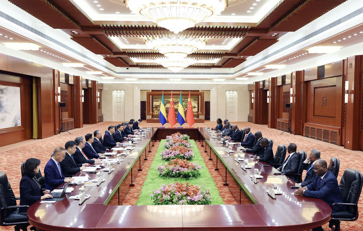 9月4日下午,國家主席習(xí)近平在北京人民大會堂會見來華出席中非合作論壇北京峰會的加蓬總統(tǒng)恩圭馬。