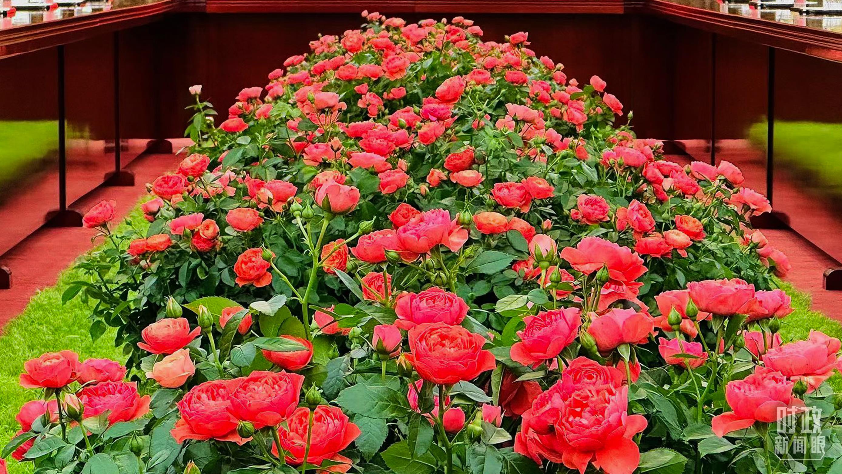 東大廳會談桌中間擺放的紅果汁月季,象征著蓬勃與堅(jiān)韌。(總臺央視記者范一鳴拍攝)