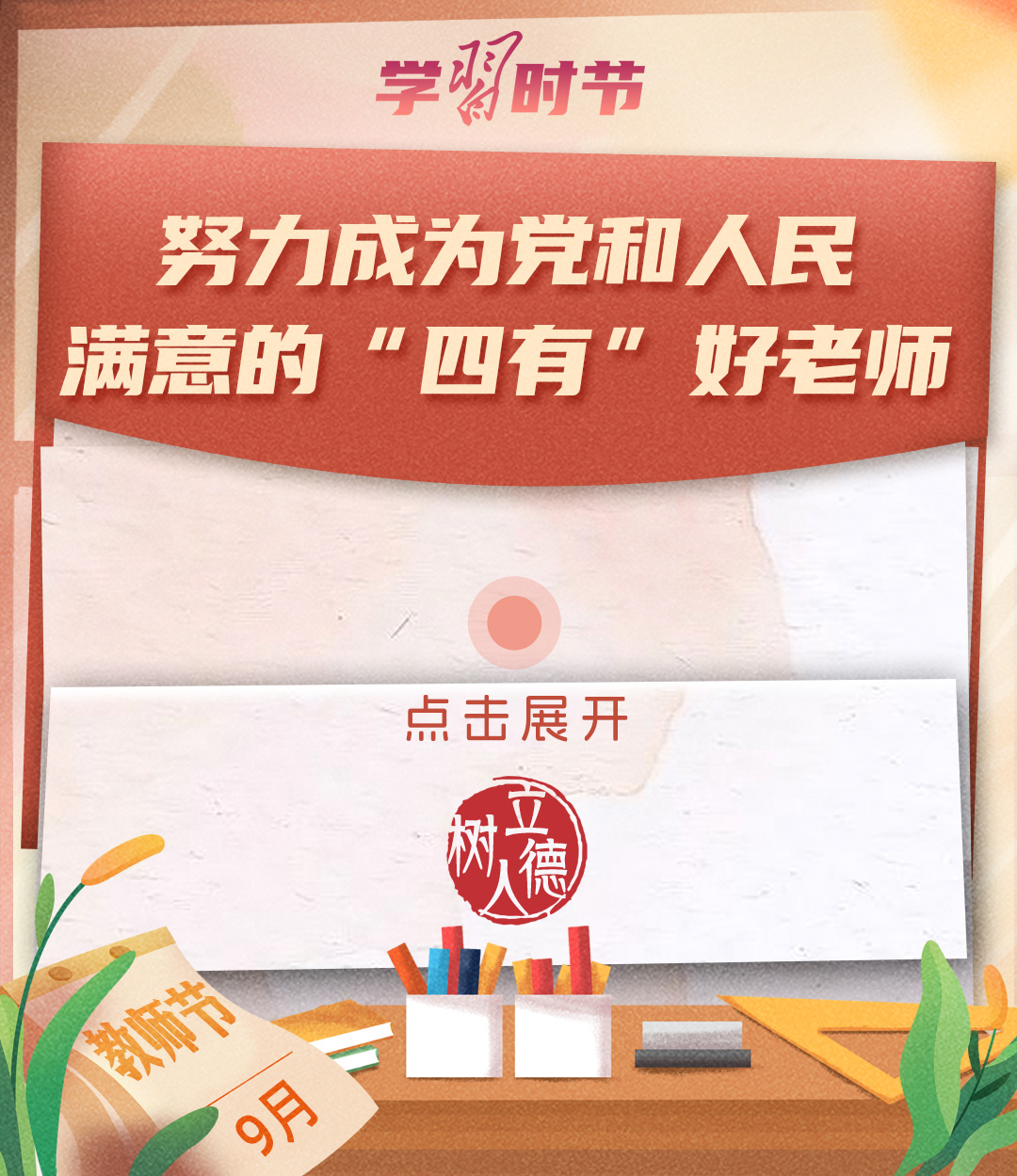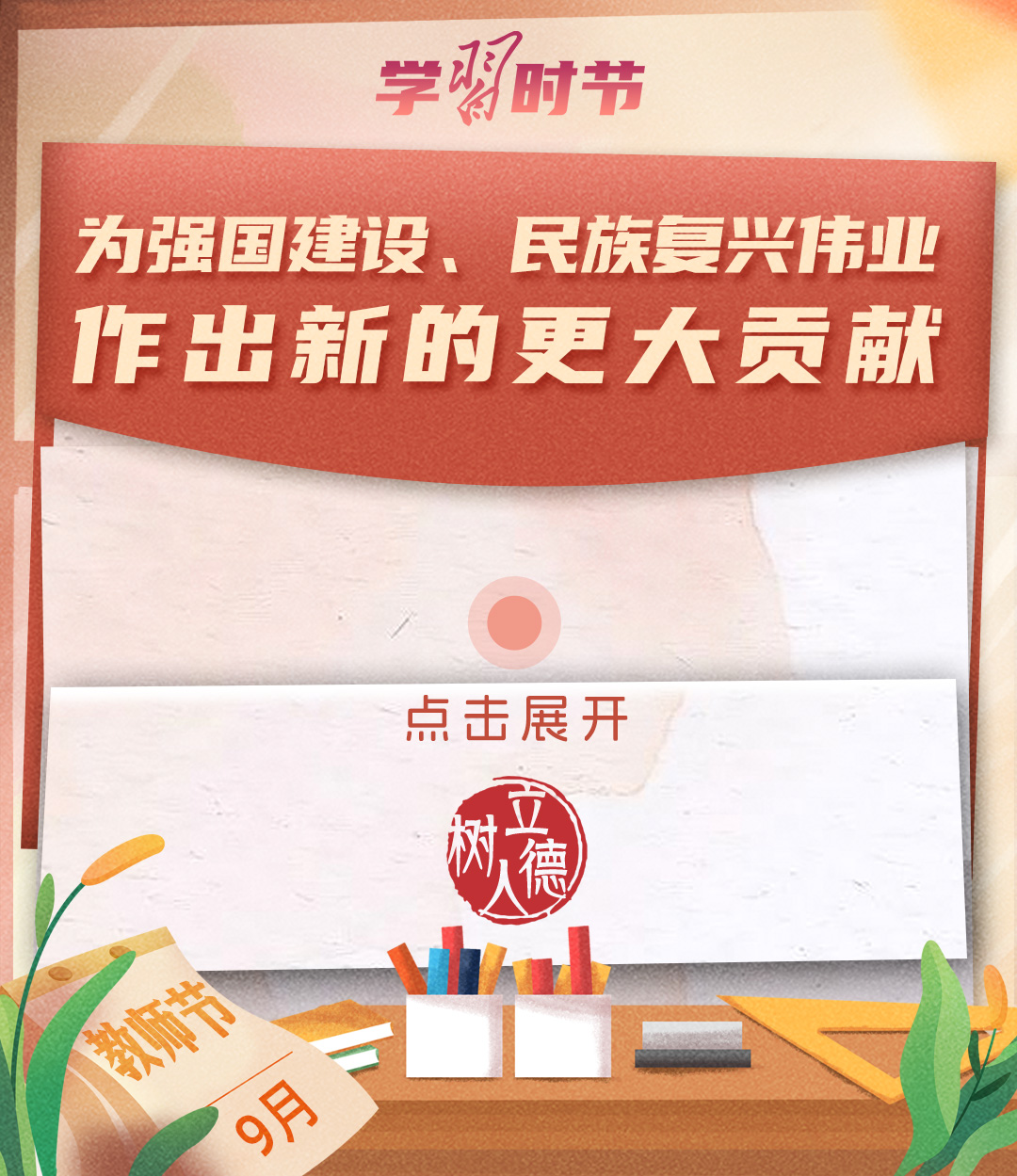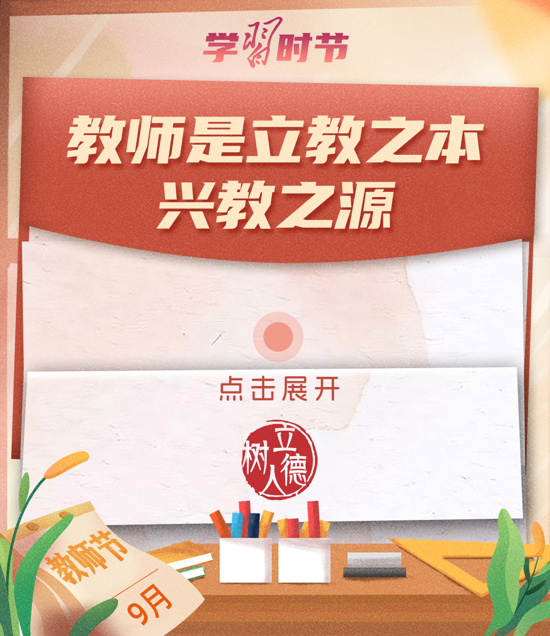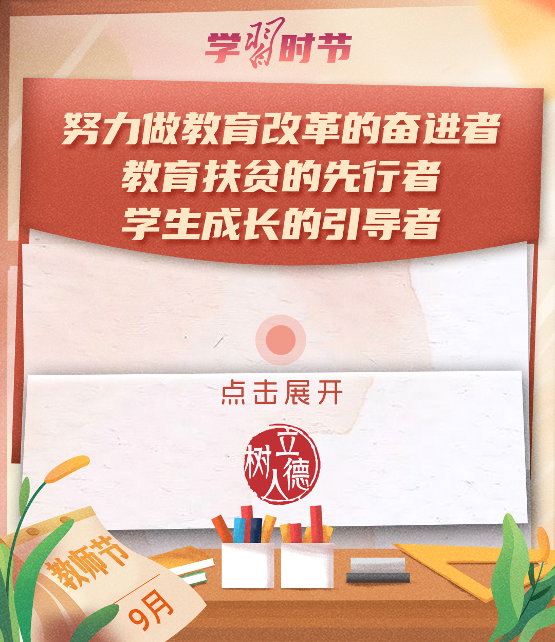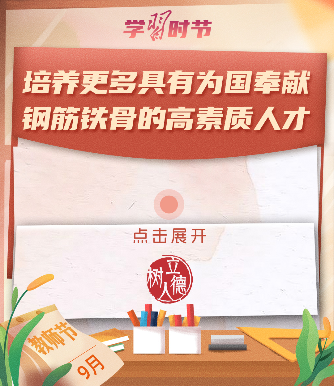 “百年大計(jì),教育為本。教育大計(jì),教師為本。”黨的十八大以來,習(xí)近平總書記多次以書信形式向教師群體和教育工作者表達(dá)囑托與期望,諄諄話語(yǔ),催人奮進(jìn)。在第四十個(gè)教師節(jié)到來之際,讓我們一起重溫總書記的諄諄寄語(yǔ)!