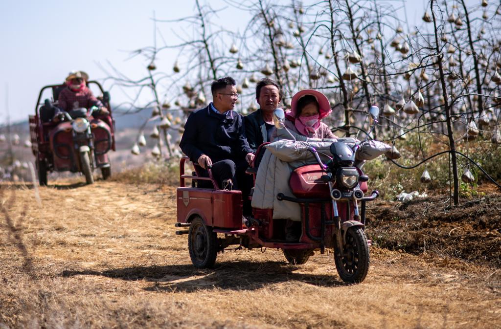 全國人大代表袁海波(右三)在云南省曲靖市馬龍區(qū)一種植基地了解務(wù)工人員就業(yè)需求(2023年2月11日攝)。 新華社記者 江文耀 攝