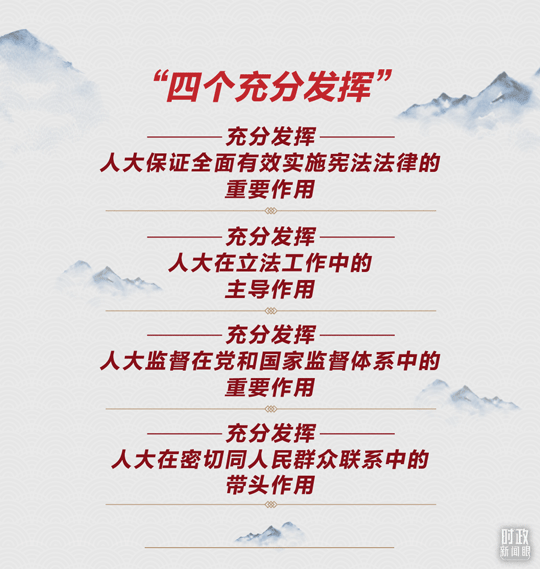 在今年這次大會上,總書記作出“四個充分發(fā)揮”的重要部署,與各級人大及其常委會“四個機關(guān)”建設(shè)緊密相關(guān)。從確保憲法法律得到有效實施,到推進科學立法、民主立法、依法立法,從擔負起憲法法律賦予的監(jiān)督職責,到豐富人大代表聯(lián)系人民群眾的內(nèi)容和形式,總書記提出了明確要求。