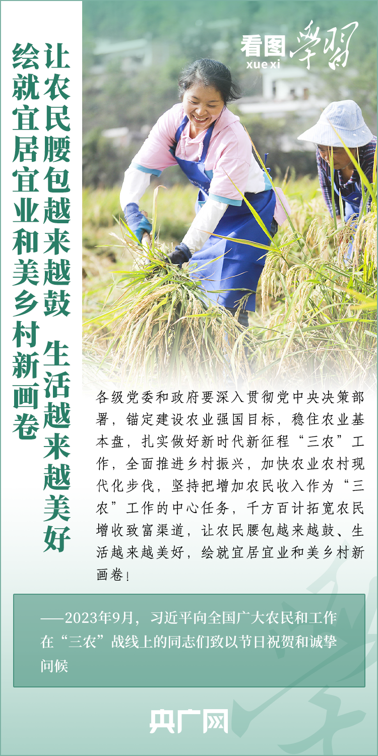 民族要復(fù)興,鄉(xiāng)村必振興。黨的十八大以來,每到各地考察調(diào)研,習(xí)近平總書記總會(huì)去農(nóng)村看一看,走進(jìn)田間地頭,和農(nóng)民拉拉家常??倳洀?qiáng)調(diào),“建設(shè)宜居宜業(yè)和美鄉(xiāng)村是農(nóng)業(yè)強(qiáng)國(guó)的應(yīng)有之義”,“要讓農(nóng)民腰包越來越鼓、生活越來越美好”。