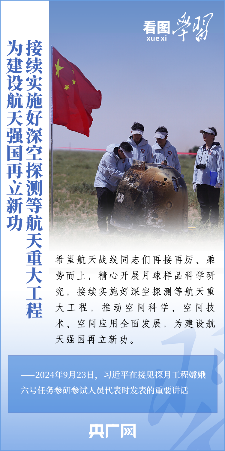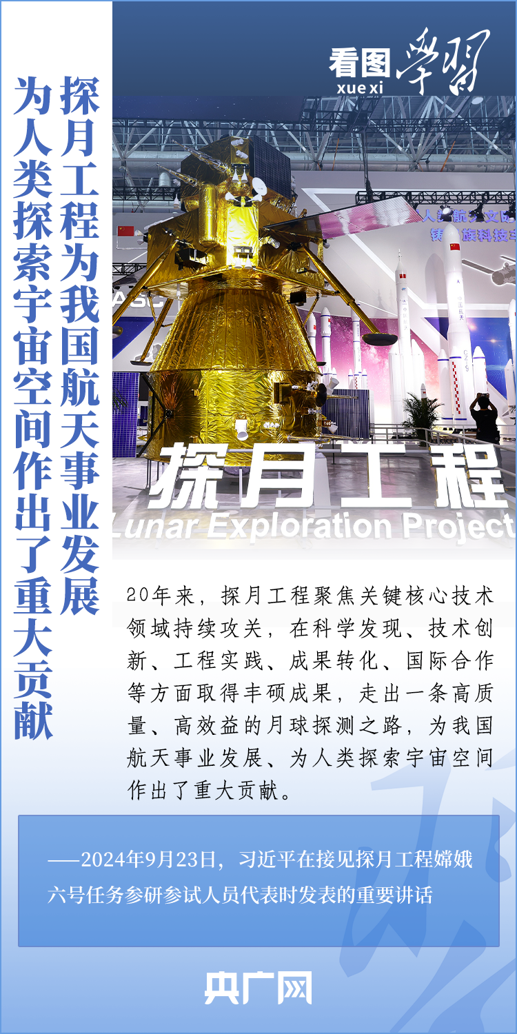 中國(guó)探月工程成果凝結(jié)著我國(guó)幾代航天人的智慧和心血。9月23日,習(xí)近平總書記接見探月工程嫦娥六號(hào)任務(wù)參研參試人員代表并發(fā)表重要講話??倳浉叨瓤隙ㄦ隙鹆?hào)任務(wù)成功的重要意義,以及探月工程為我國(guó)航天事業(yè)發(fā)展、為人類探索宇宙空間作出的重大貢獻(xiàn),勉勵(lì)航天戰(zhàn)線工作者再接再厲、乘勢(shì)而上,為建設(shè)航天強(qiáng)國(guó)再立新功。一起來(lái)學(xué)習(xí)!