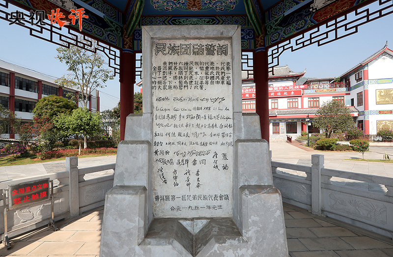 普洱民族團結(jié)誓詞碑被譽為“新中國民族團結(jié)第一碑”。1950年,云南普洱專區(qū)各族代表應(yīng)邀到北京參加新中國成立一周年慶?;顒?,受到毛澤東等黨和國家領(lǐng)導(dǎo)人親切接見。1951年元旦,普洱專區(qū)各族群眾舉行盟誓大會,以少數(shù)民族的風(fēng)俗習(xí)慣立下誓詞碑。盟誓立碑后,各民族兄弟姐妹用實際行動踐行“一心一德跟黨走”的錚錚誓言,推動邊疆地區(qū)經(jīng)濟社會發(fā)展取得了歷史性成就,書寫了民族團結(jié)進步生動篇章。