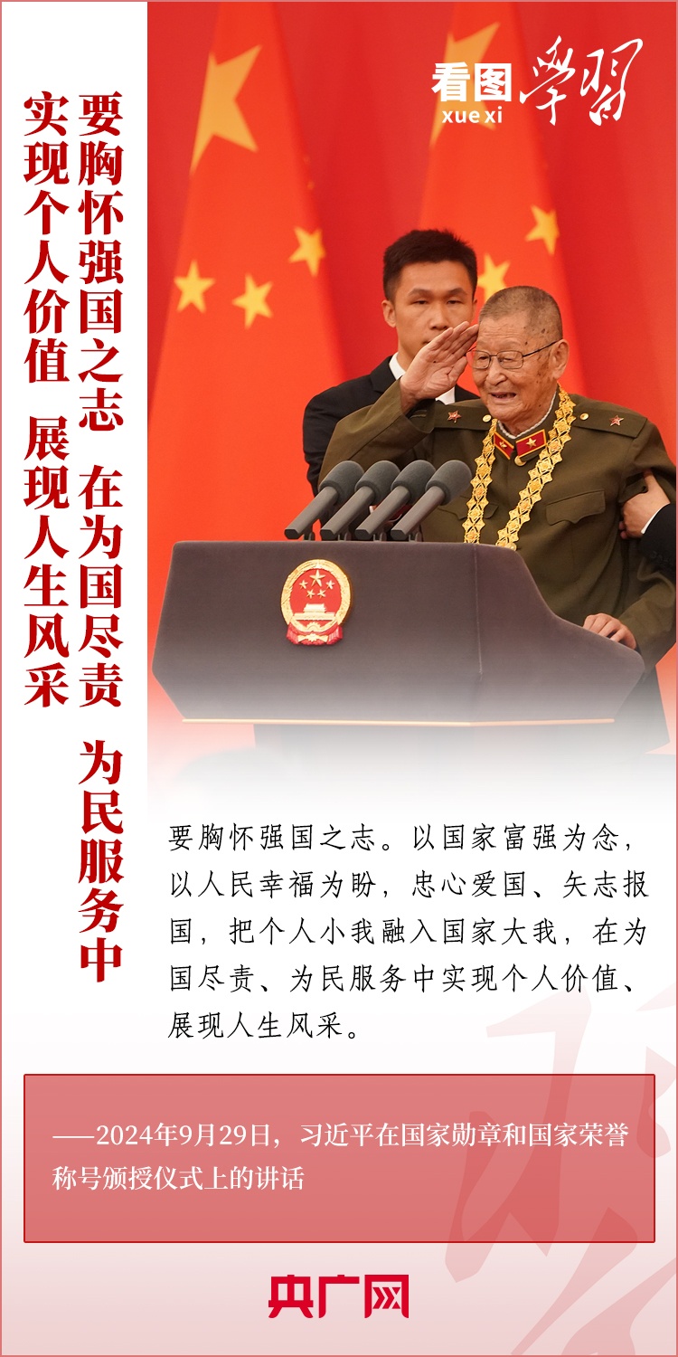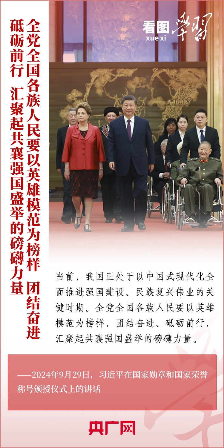 9月29日,中華人民共和國(guó)國(guó)家勛章和國(guó)家榮譽(yù)稱號(hào)頒授儀式在北京舉行,習(xí)近平總書記向國(guó)家勛章和國(guó)家榮譽(yù)稱號(hào)獲得者頒授勛章獎(jiǎng)?wù)虏l(fā)表重要講話??倳洀?qiáng)調(diào),全黨全國(guó)各族人民要以英雄模范為榜樣,團(tuán)結(jié)奮進(jìn)、砥礪前行,匯聚起共襄強(qiáng)國(guó)盛舉的磅礴力量。一起來(lái)學(xué)習(xí)!
