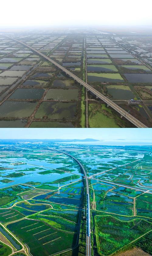 拼版圖片:圖為2011年和2023年鄱陽湖區(qū)的變化,曾經(jīng)湖區(qū)內(nèi)分布有捕鳥網(wǎng),如今人與自然和諧共生的理念深入人心。攝影:傅建斌 周海燕 制作:賈稀荃