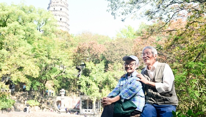 江蘇蘇州,老人們登虎丘山迎重陽(yáng)