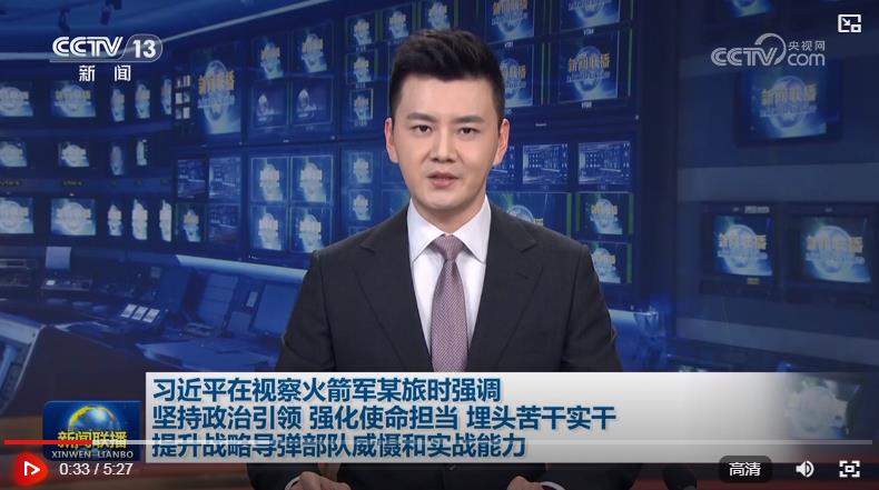 中共中央總書(shū)記、國(guó)家主席、中央軍委主席習(xí)近平17日到火箭軍某旅視察,強(qiáng)調(diào)要深入貫徹新時(shí)代強(qiáng)軍思想,貫徹新時(shí)代軍事戰(zhàn)略方針,把握戰(zhàn)略導(dǎo)彈部隊(duì)建設(shè)和作戰(zhàn)運(yùn)用特點(diǎn)規(guī)律,堅(jiān)持政治引領(lǐng),強(qiáng)化使命擔(dān)當(dāng),埋頭苦干實(shí)干,推進(jìn)部隊(duì)建設(shè)高質(zhì)量發(fā)展,提升戰(zhàn)略威懾和實(shí)戰(zhàn)能力,堅(jiān)決完成黨和人民賦予的各項(xiàng)任務(wù)。