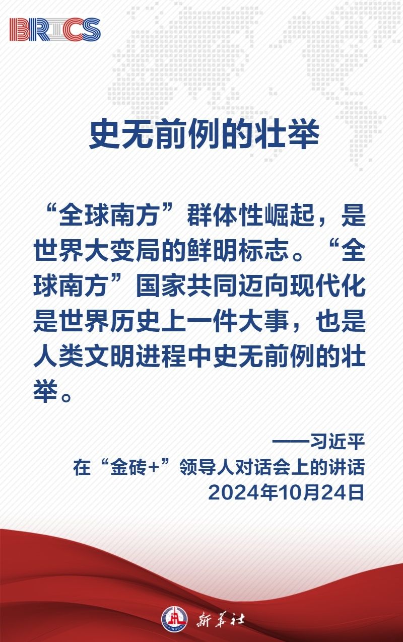 當(dāng)?shù)貢r間10月24日上午,國家主席習(xí)近平在喀山會展中心出席“金磚+”領(lǐng)導(dǎo)人對話會并發(fā)表題為《匯聚“全球南方”磅礴力量 共同推動構(gòu)建人類命運共同體》的重要講話,闡明中國主張——