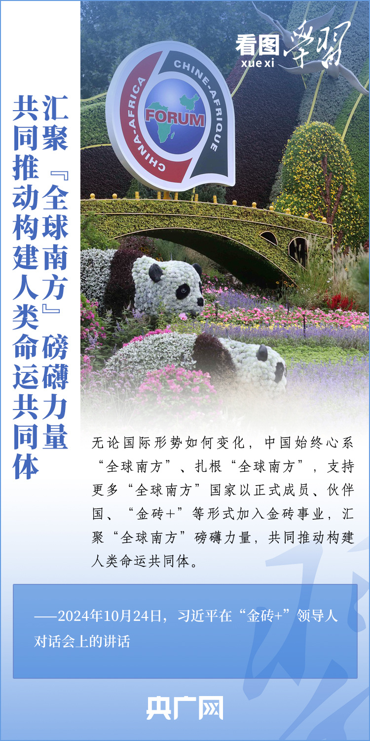 “‘全球南方’群體性崛起,是世界大變局的鮮明標(biāo)志?!碑?dāng)?shù)貢r間10月24日,國家主席習(xí)近平在俄羅斯喀山出席“金磚+”領(lǐng)導(dǎo)人對話會并發(fā)表重要講話。習(xí)主席深刻闡述了“全球南方”群體性崛起的重要意義,圍繞和平、發(fā)展、文明提出三方面務(wù)實舉措,呼吁與會“金磚+”領(lǐng)導(dǎo)人展現(xiàn)集體智慧和力量,匯聚“全球南方”磅礴力量,共同推動構(gòu)建人類命運共同體。一起來學(xué)習(xí)!