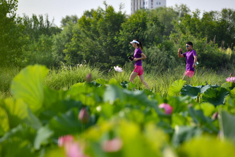 2024年6月23日,市民在陜西省漢中市天漢濕地公園內(nèi)運動休閑。漢江是長江的最大支流,是南水北調(diào)中線工程的重要水源。近年來,漢中市加強對漢江源頭和沿岸濕地生態(tài)保護修復,構(gòu)建人水和諧共生的美麗城市,確保“一泓清水永續(xù)北上”。