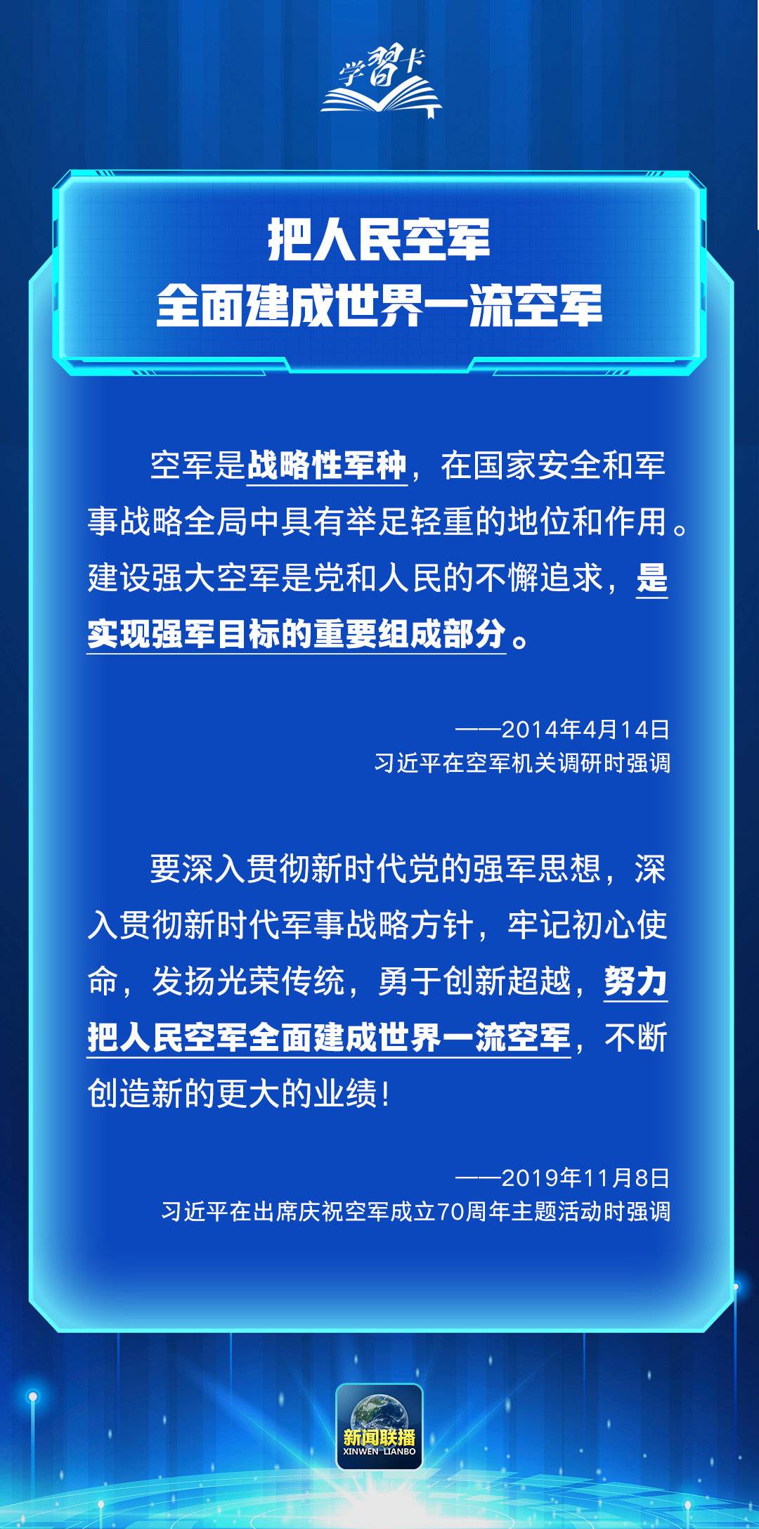 2024年11月11日,是中國人民解放軍空軍成立75周年紀(jì)念日。在黨的堅(jiān)強(qiáng)領(lǐng)導(dǎo)下,一代代空軍官兵胸懷凌云壯志,搏擊萬里長(zhǎng)空,推動(dòng)空軍建設(shè)取得舉世矚目的成就,為維護(hù)國家主權(quán)、安全、發(fā)展利益建立了不朽功勛。如何把人民空軍全面建成世界一流空軍?一起學(xué)習(xí)↓