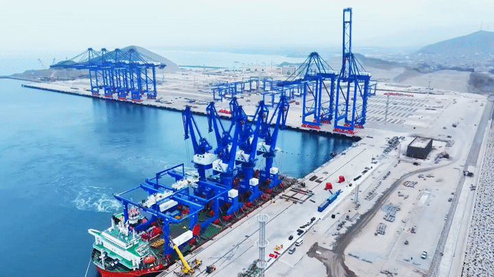當?shù)貢r間11月14日晚,習近平主席同博魯阿爾特總統(tǒng)在利馬總統(tǒng)府以視頻方式共同出席錢凱港開港儀式。