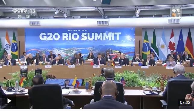 當天,G20領(lǐng)導(dǎo)人第十九次峰會在里約熱內(nèi)盧現(xiàn)代藝術(shù)博物館開幕。峰會主題是“構(gòu)建公正的世界和可持續(xù)的星球”,重點聚焦全球不平等、抗擊饑餓與貧困、可持續(xù)發(fā)展和全球治理改革等議題。