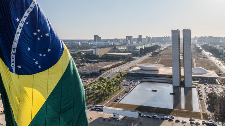 這是2024年7月16日在巴西首都巴西利亞拍攝的國會大廈(無人機(jī)照片)。 新華社記者 王天聰 攝