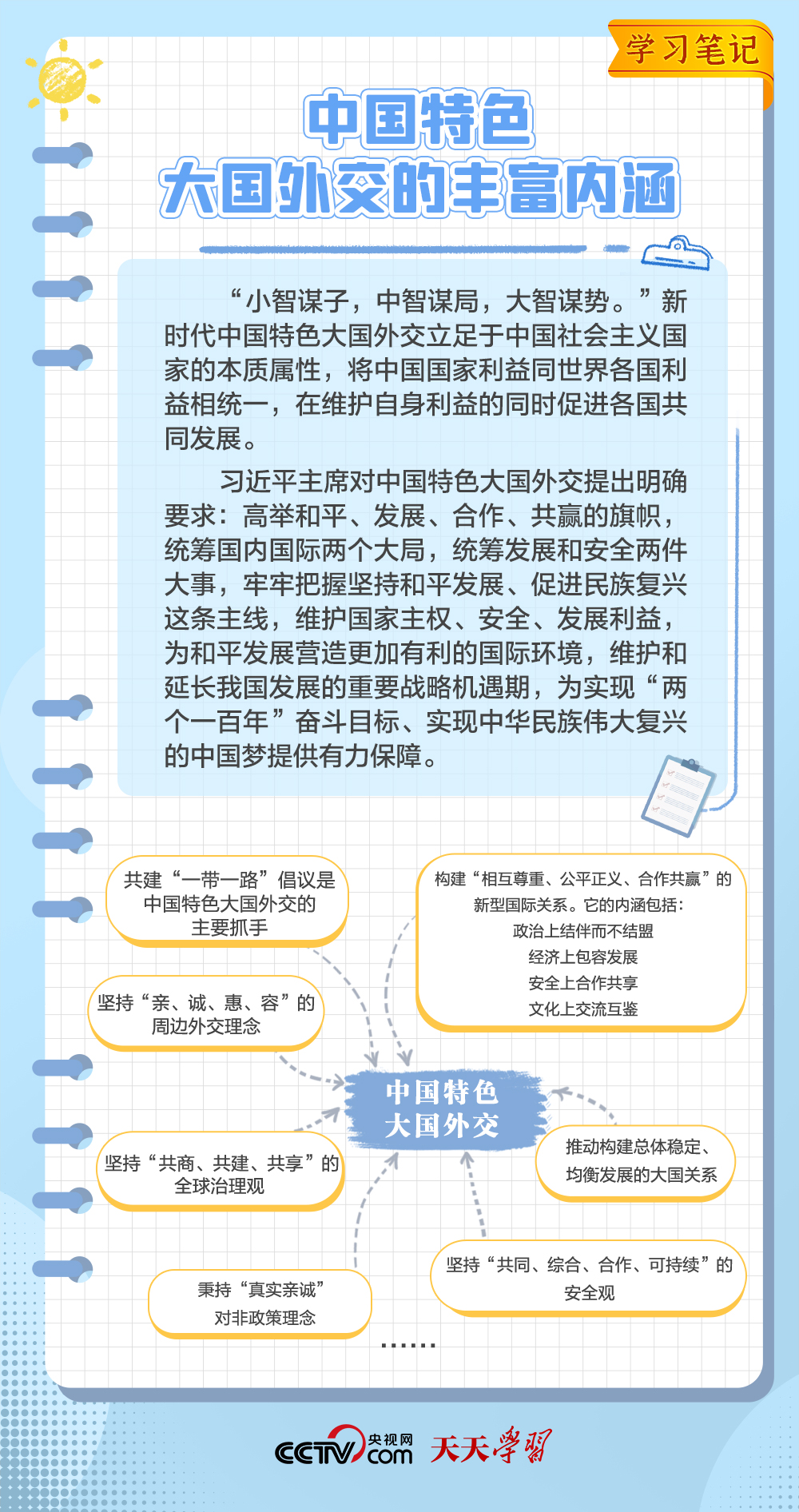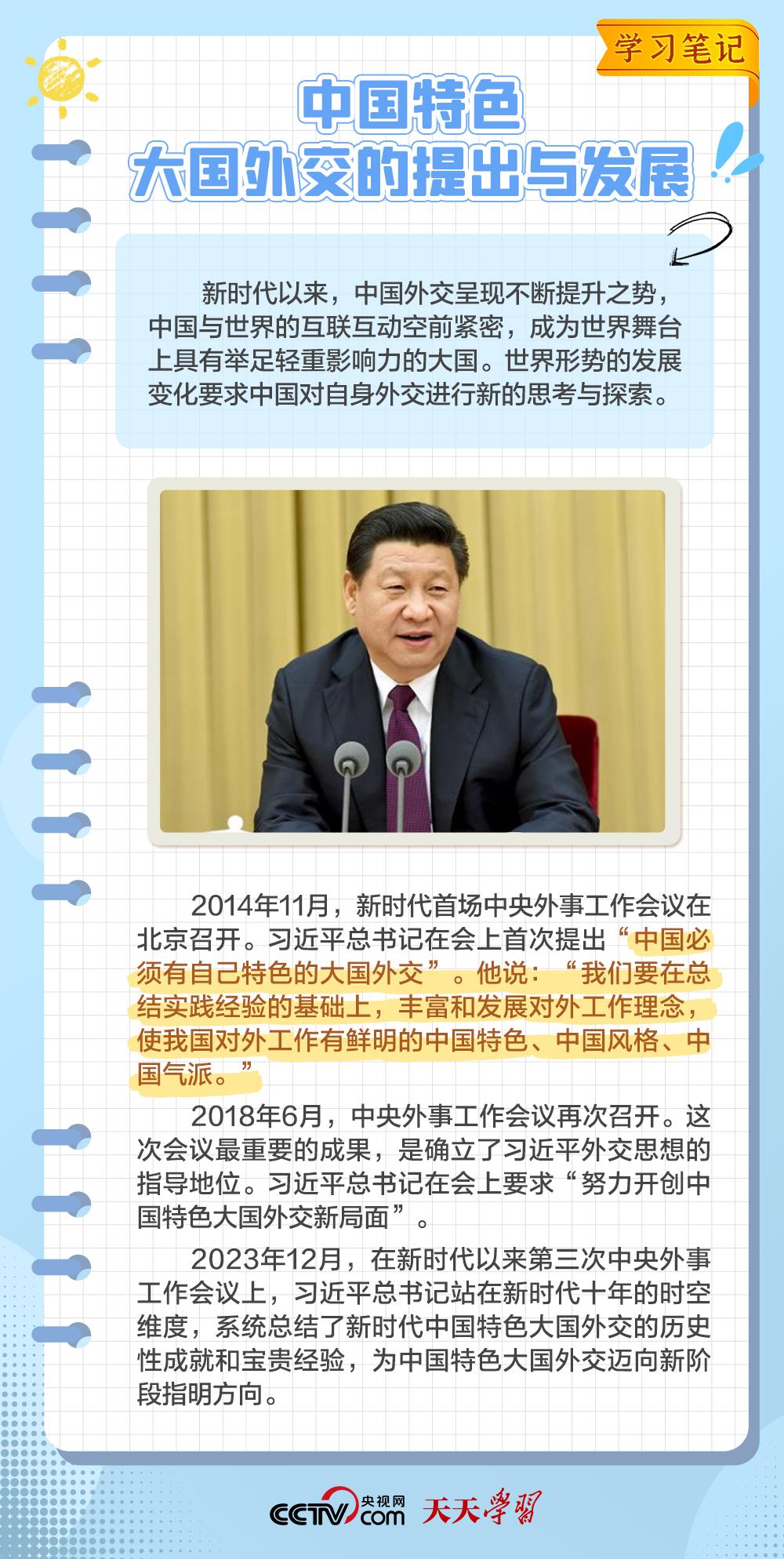 天天學(xué)習(xí)2014年11月,習(xí)近平總書記在中央外事工作會議上指出,中國必須有自己特色的大國外交。