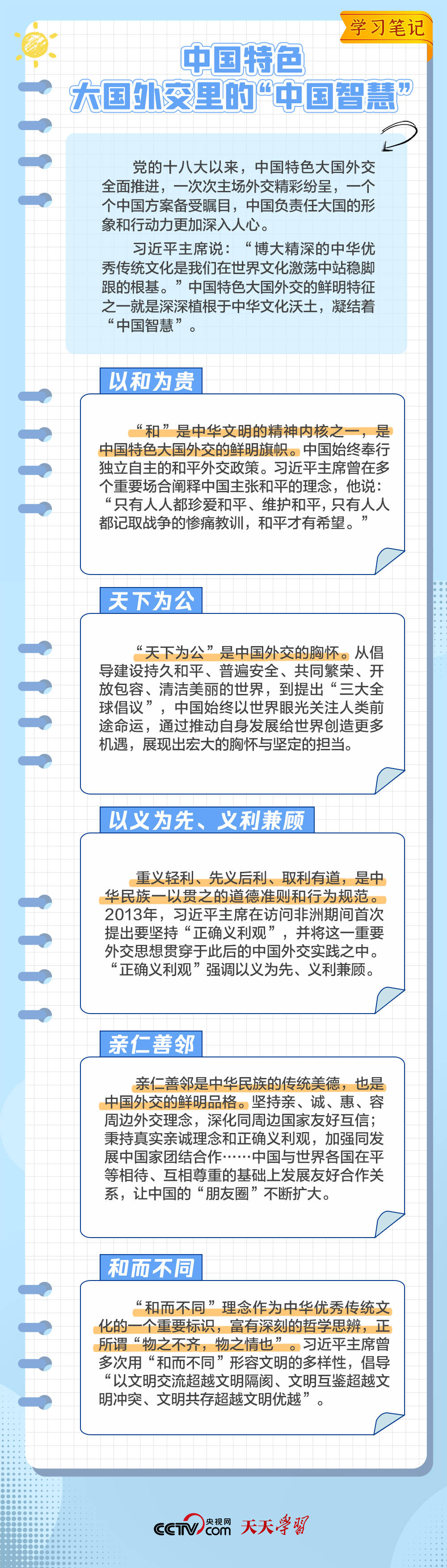 10年來,面對風(fēng)云變幻的國際形勢,中國特色大國外交扎實推進,形成了全方位、多層次、立體化的外交布局,為我國高質(zhì)量發(fā)展營造了良好外部環(huán)境。中國特色大國外交提出10周年之際,《學(xué)習(xí)筆記》特梳理其內(nèi)涵要義,與您一同感悟其中蘊含的“中國智慧”。