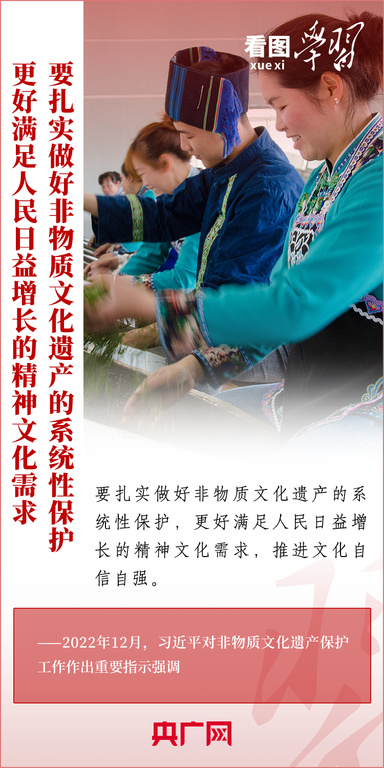 非物質(zhì)文化遺產(chǎn)是中華優(yōu)秀傳統(tǒng)文化的重要組成部分,是中華文明綿延傳承的生動(dòng)見(jiàn)證。習(xí)近平總書(shū)記高度重視推動(dòng)中華優(yōu)秀傳統(tǒng)文化的創(chuàng)造性轉(zhuǎn)化、創(chuàng)新性發(fā)展,多次對(duì)非物質(zhì)文化遺產(chǎn)保護(hù)工作作出重要指示,強(qiáng)調(diào)要扎實(shí)做好非物質(zhì)文化遺產(chǎn)的系統(tǒng)性保護(hù),推動(dòng)中華文化更好走向世界。