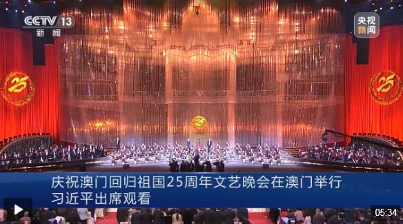 鏡海揚(yáng)帆風(fēng)正勁,濠江歡歌向未來(lái)。慶祝澳門回歸祖國(guó)25周年文藝晚會(huì)19日晚在澳門東亞運(yùn)動(dòng)會(huì)體育館舉行。中共中央總書(shū)記、國(guó)家主席、中央軍委主席習(xí)近平觀看了演出。