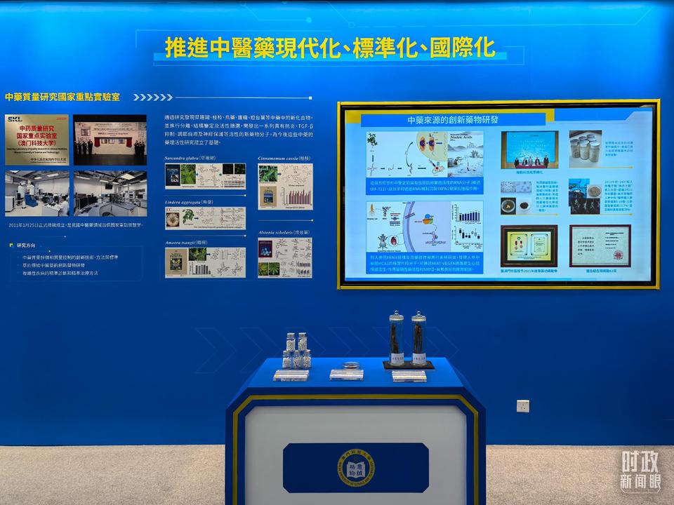 △澳門科技大學(xué)中藥質(zhì)量研究國(guó)家重點(diǎn)實(shí)驗(yàn)室、月球與行星科學(xué)國(guó)家重點(diǎn)實(shí)驗(yàn)室成果展示。(總臺(tái)央視記者陸泓宇拍攝)