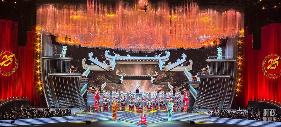 △慶祝澳門回歸祖國(guó)25周年文藝晚會(huì)現(xiàn)場(chǎng)燈光璀璨,歡樂(lè)喜慶。(總臺(tái)央視記者許永松拍攝)